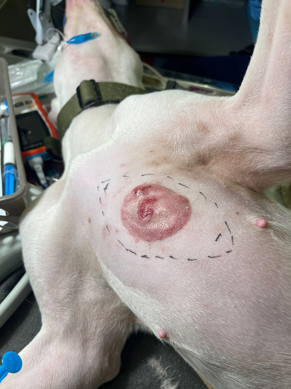 В октябре владельцы заметили у Майи небольшое образование на коже. Майя — 9-месячная стаффордширская терьерка, активная, молодая собака без хронических проблем со здоровьем.