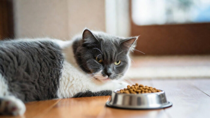 Иногда кот подходит к миске, нюхает, даже пробует есть — и сразу отходит. Или ест только мягкий корм и отказывается от сухого.