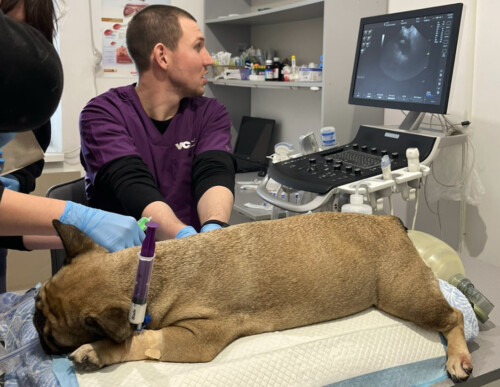 После детального обсуждения ситуации с владельцами было принято решение о неотложном откачивании жидкости из грудной полости и сердечной сумки. В ходе процедуры было эвакуировано: